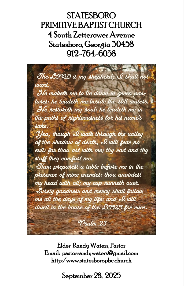 Sunday -9:15 AM Bible Study / 10:30 AM Worship Service / 6:00 PM Evening Service --- Wednesday - 6:15 Bible Study & PBYF